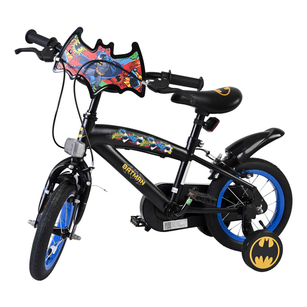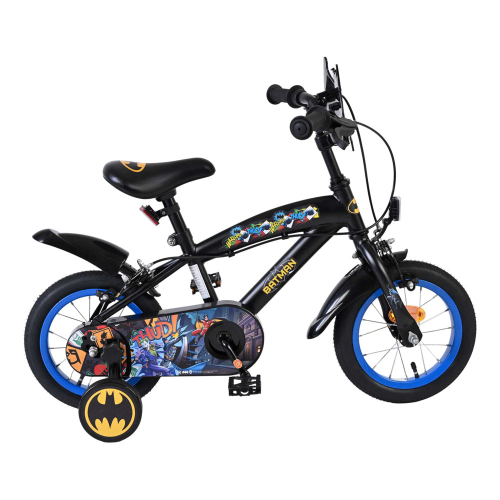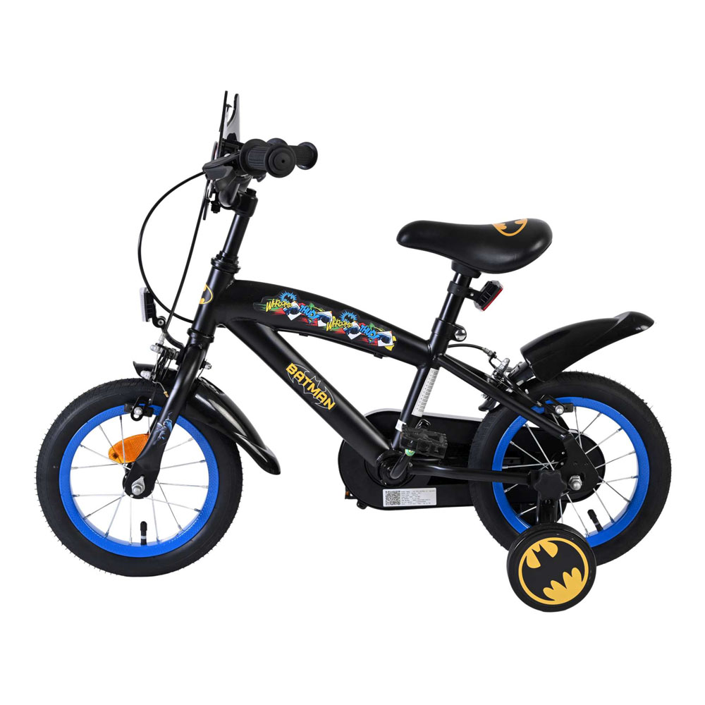Learning to ride a bike is fun for every child with the Batman 12-inch children's bike! Safety is paramount! That's why this cool bike has two hand brakes (no coaster brakes) and a closed chain guard. It also has removable training wheels for quick learning. Comfort has also been considered. This beautiful black Batman bike with blue accents has a pleasantly soft saddle and an extra-sturdy frame that can withstand a few knocks. To ensure you can enjoy the bike for as long as possible, the saddle and handlebars are height-adjustable. In short: a top-quality bike that your child will enjoy for years to come! Official Licensed Batman Product.