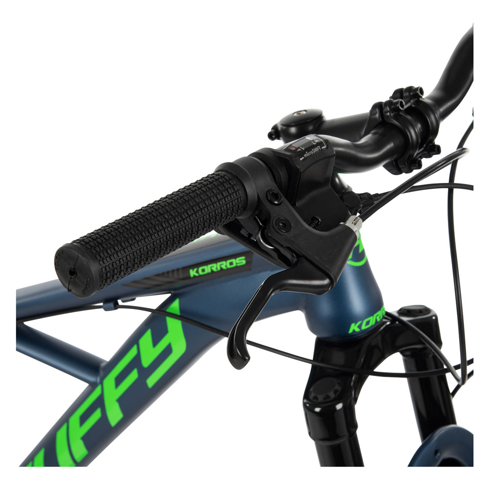 The new Korros series is made for everyday cycling and for when you want to explore rougher terrain and trails. Thanks to the suspension fork, the Korros can handle rougher terrain perfectly. Built to last the Huffy Korros includes a modern X-frame design that provides a stiff hardtail for better power transfer. This means a lighter, more agile bike with quality parts that last a long time and are easier to maintain, so you can enjoy riding for years to come.