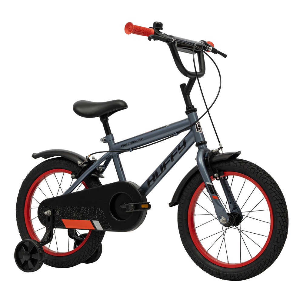 Every ride ahead is sure to be booming with adventure on the Huffy Pro Thunder for boys. This 16-inch bike with Stabilisers is a great choice for riders continuing to grow in confidence on a bicycle. The stabilisers can be removed when your child is ready for riding on two wheels, and the front and rear steel sidepull caliper brakes offer efficient stopping. This awesome boys' bike will have your child eager for many outdoor adventures!.