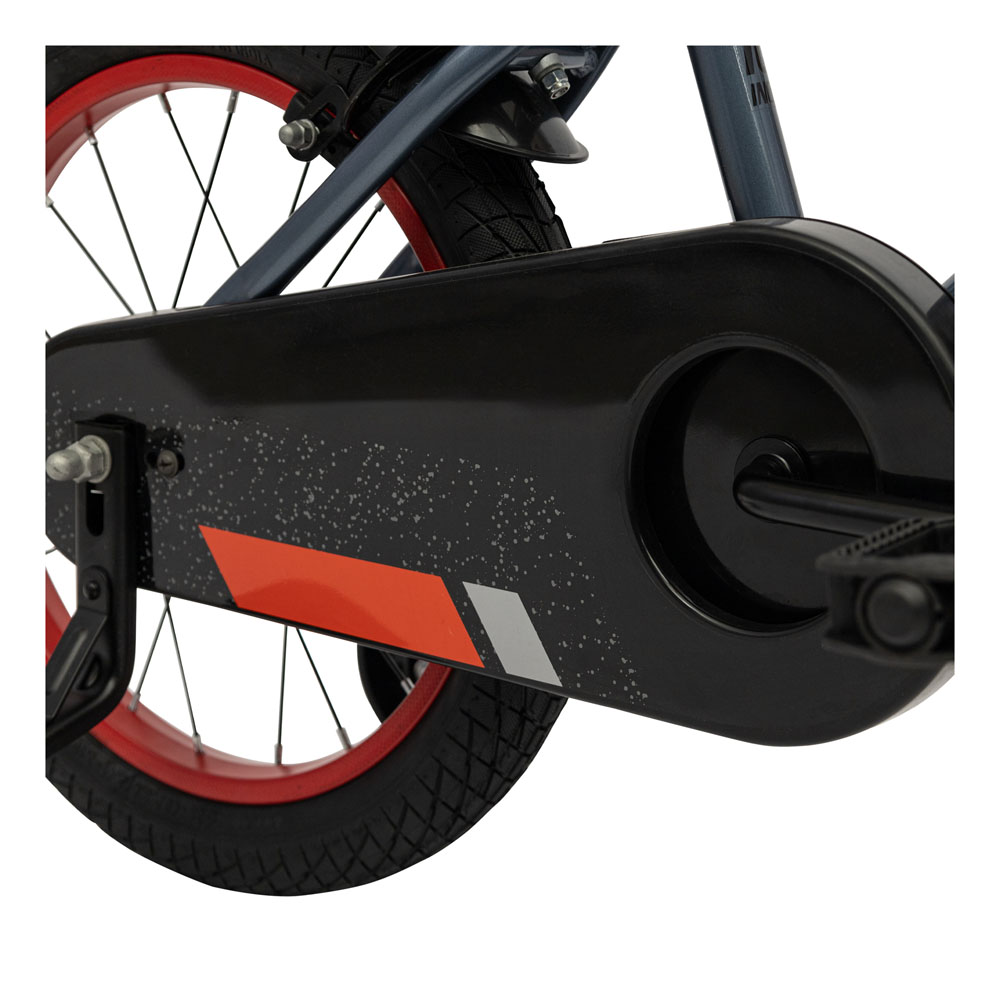 Durable steel frame in grey will last through the demands of a newer rider learning how to ride a bike or the daring energy of a young boy.