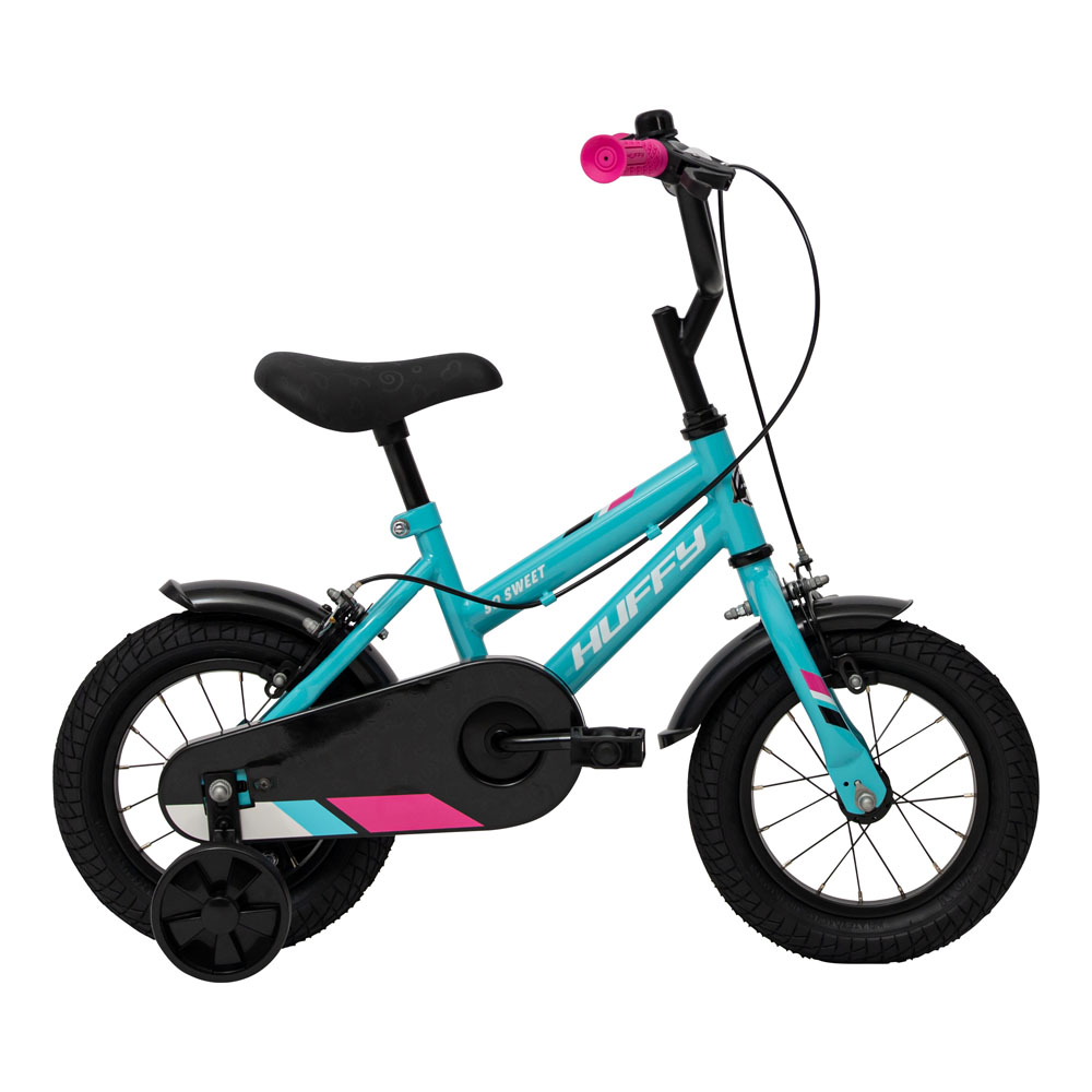 Bike rides on the Huffy So Sweet are a treat for your newer rider!. This 12-inch girls' bike with stabilisers is a great choice for young riders learning to grow in confidence on a bicycle. The Stabilisers can be removed when your child is ready for riding on two wheels, and the front and rear steel sidepull caliper brakes offer efficient stopping. The simple, yet beautiful pool blue design will capture your little one's heart, and the fun she has will keep her coming back again and again to ride!. Your kiddo will be riding on the Huffy So Sweet bike for girls!.