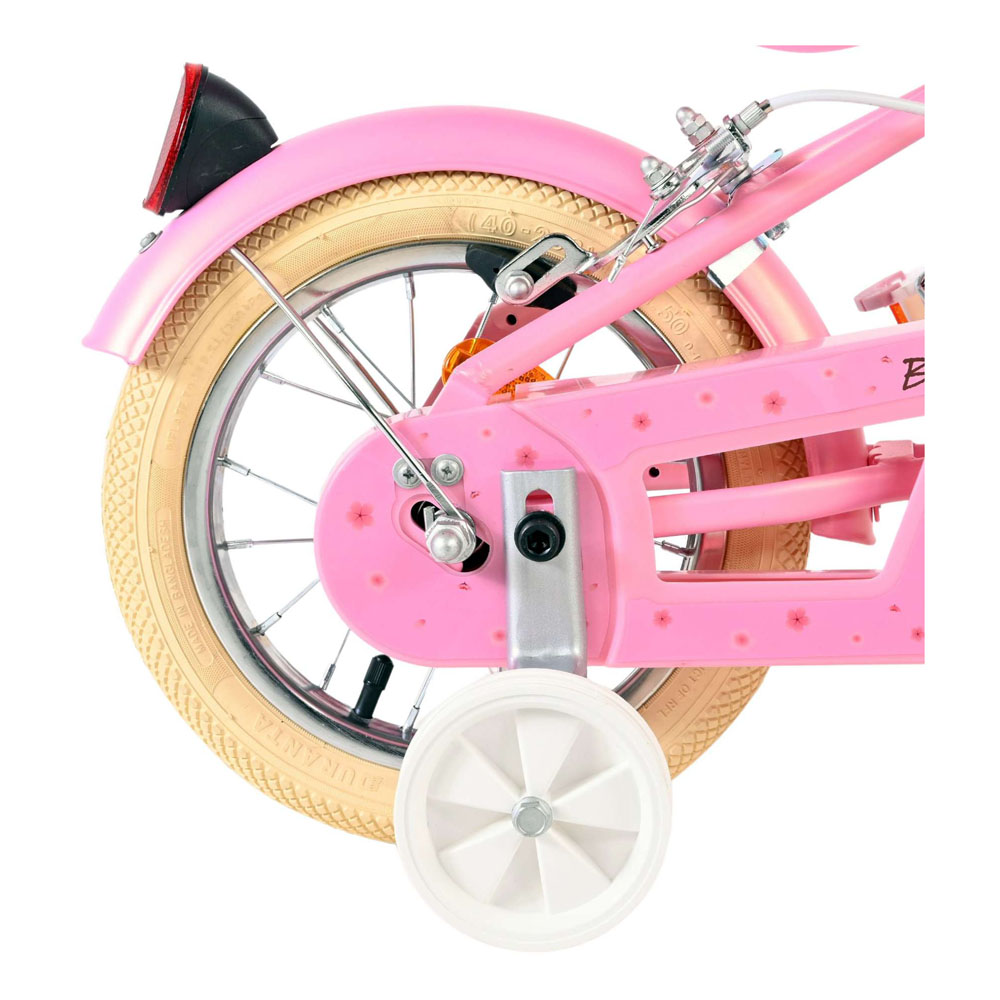 Learning to ride a bike is fun for every child with the Volare Blossom 12-inch children's bike! Safety is paramount! That's why this cool bike doesn't have a coaster brake, but two hand brakes! It also has removable training wheels and a closed chain guard. The bike has reflectors on the front, back, and wheels. Comfort has also been considered. The beautiful pink Blossom bike has a comfortable saddle, a doll seat, a wicker basket, and cheerful handlebar streamers to brighten up the bike. To ensure you can enjoy the bike for as long as possible, the saddle and handlebars are height-adjustable. All mounting hardware needed to assemble the bike is included! In short: a top-quality bicycle that your child can enjoy for years to come!
