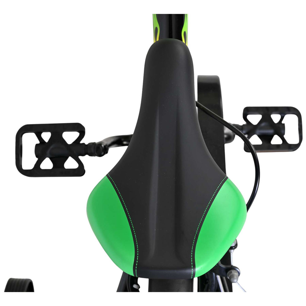 The Volare Strike 12-inch children's bike is a cool bike for young racers ready for their first adventures on two wheels. With its sporty black and green design and robust appearance, this bike is a real eye-catcher. The bike is equipped with two hand brakes (no coaster brakes), ensuring safe and controlled braking at all times. The enclosed chain guard protects little fingers and keeps the chain clean. Thanks to the reflectors in the wheels, both front and rear, your child is clearly visible on the road. The removable training wheels help children learn to ride a bike step by step, and when they're ready to ride independently, the training wheels can easily be removed. The saddle and handlebars are height-adjustable, so the bike grows with your child. It also features a bell so everyone knows a real rider is approaching. The Volare Strike 12-inch children's bike combines safety, quality, and a cool design perfect for little speed demons who want to cycle with confidence.
