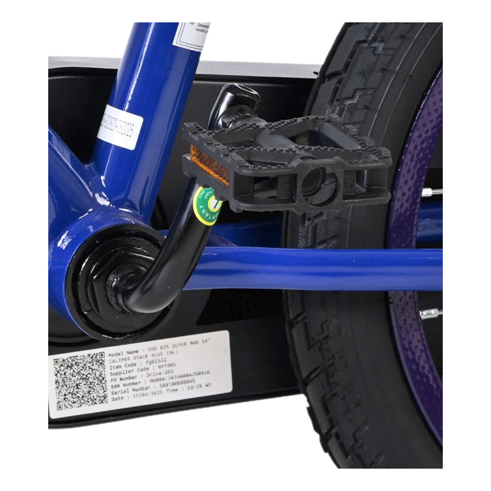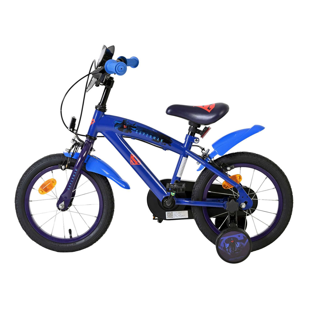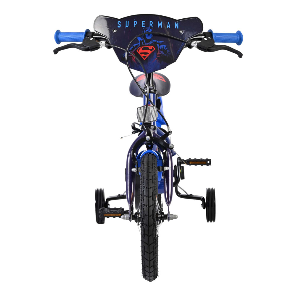 The Superman 14-inch kids' bike is the perfect bike for little superheroes who love to go on adventures! This cool, dark blue bike features a bold Superman design and a cool front panel with the iconic Superman logo; ideal for fans of the Man of Steel. The bike is equipped with two hand brakes (no coaster brakes), so children can brake safely and with control, just like their older counterparts. The removable training wheels provide extra support while learning to ride and can be easily removed once your child can ride independently. For optimal safety, the bicycle is equipped with reflectors in the wheels and at the front and back, so that your child is always clearly visible in traffic. With the Superman 14-inch children's bike, every ride feels like a hero's deed!