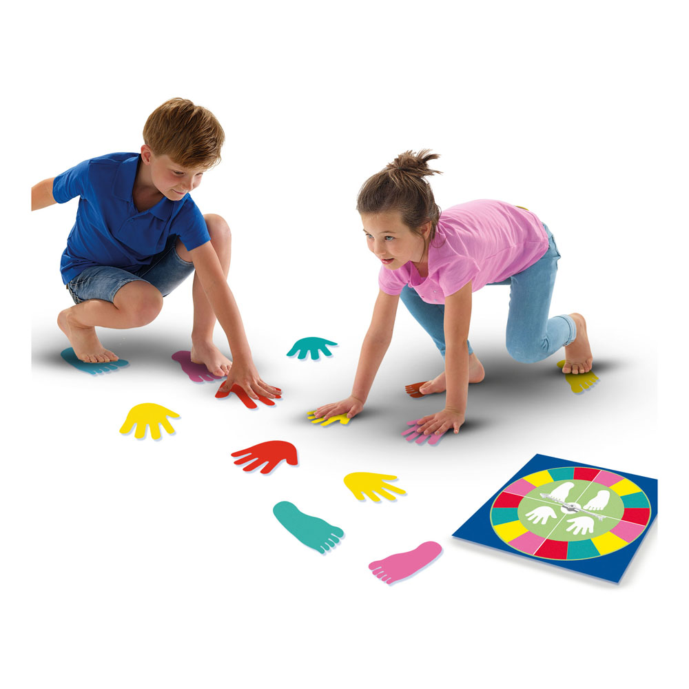 This game can be played anywhere and will keep children entertained all afternoon. With the foam hands and feet, you can create your own layout. As unique as you like! Spin the spinner and see what move you need to make next. A blue left foot or do you need to stretch to the yellow right hand? Try not to get in a tangle! Hands and feet twist comes with sixteen foam hands and sixteen feet in four different colours and a spinner board.