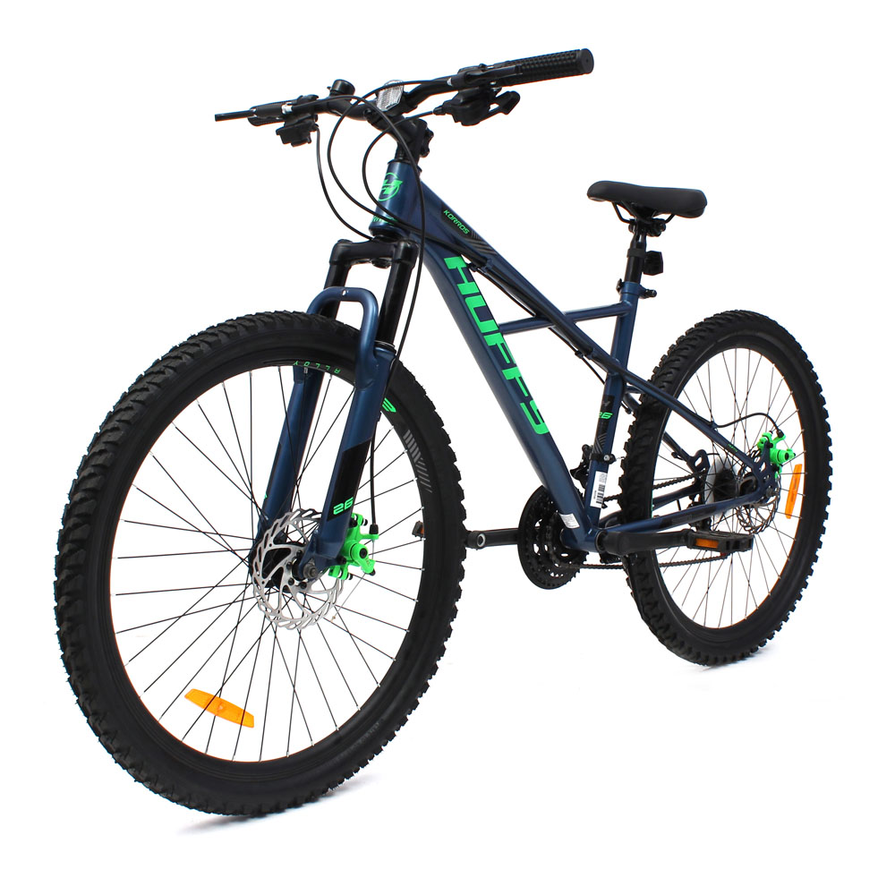 The all-new X-frame design of the Huffy Korros is the perfect 21-speed mountain bike for men with 26-inch alloy wheels and Shimano gears. Getting off the beaten track is an exciting experience for any cyclist. The Huffy Korros is a bicycle that is suitable for difficult terrain and trails. Suitable for teenagers to adults, with 26-inch wheels and 43cm (medium) steel frame suitable for cyclists from approximately 13+ years to adults from 153cm+.