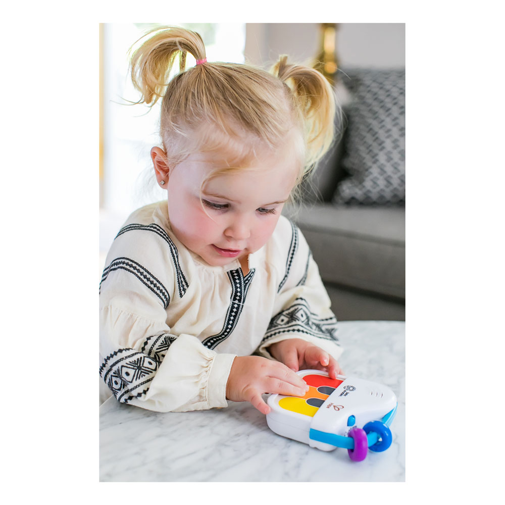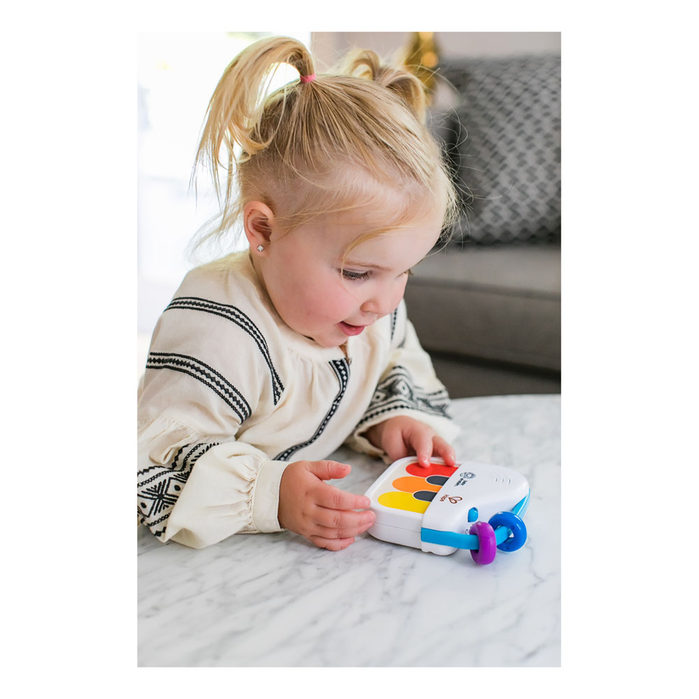 Every tap and touch will start a symphony that helps stimulate her auditory senses. Small but mighty, this portable toy encourages the development of fine motor skills as baby practices twisting the colourful keys and beads. Watch your piano prodigy play a recital everywhere she goes with this on the go version of the award winning Baby Einstein Magic Touch Piano.