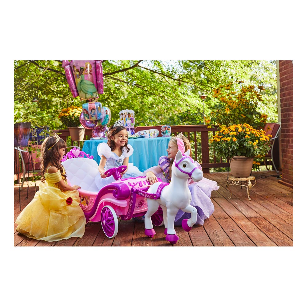 Official Disney Princess Carriage ride on with Horse. This 6v battery powered carriage includes the iconic Disney Princess styling.